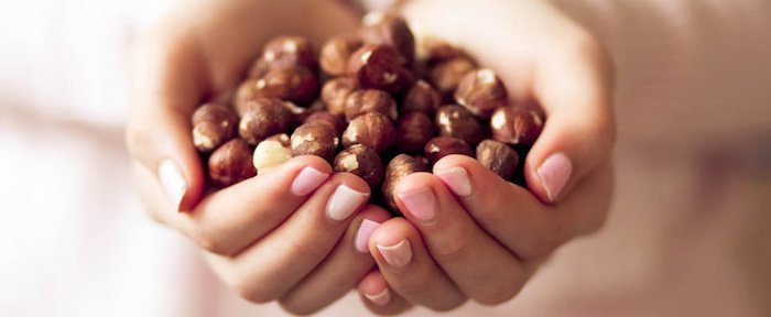 - Noix Toutes les noix que vous aimez et sur poche: noix, amandes, noix de cajou, noisettes, cèdre. L'arachide fait référence aux légumineuses, mais elle est considérée comme une noix. En passant, c'est le moins cher et contient 100 gr. presque 30gr. protéine.