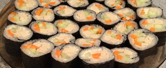 Pour le remplissage peut être utilisé: le tofu, l'avocat, le concombre, les tomates, le poivron rouge, les oignons verts, les carottes, les champignons, les algues, la mayonnaise maigre, le sésame.